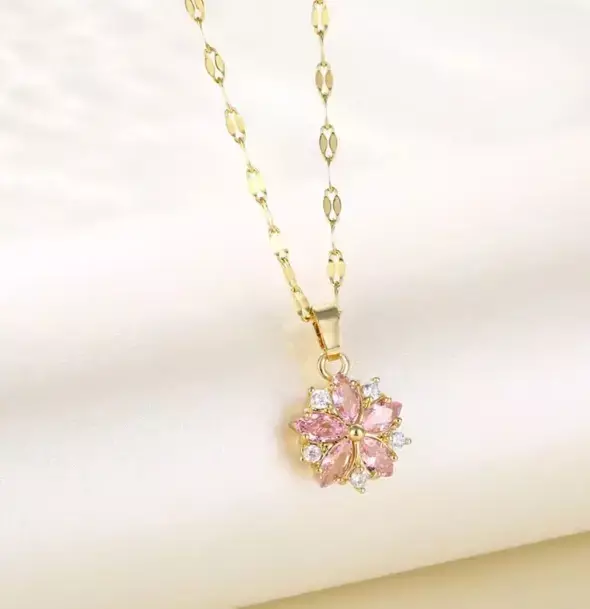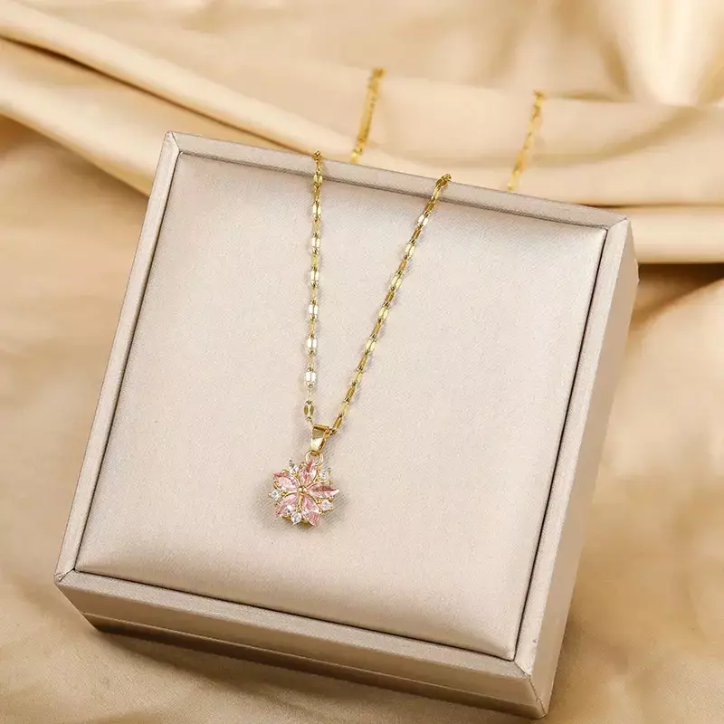 Celebre a beleza da primavera e adicione um toque romântico e moderno ao seu visual com estes encantadores colares de pingente de Sakura rosa em aço inoxidável! Um presente perfeito para irradiar beleza e delicadeza.